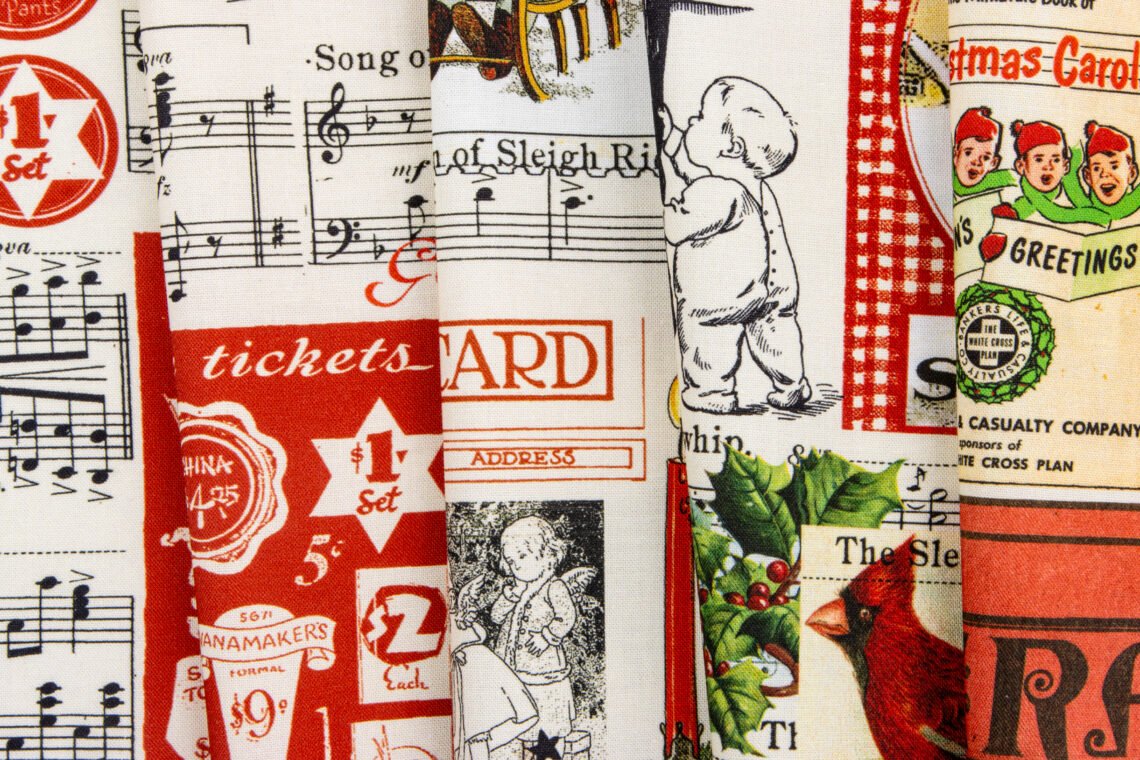 Classic Christmas Christmas Collage Parchment 45 inches wide 100% Cotton