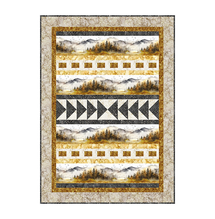 Created by design duo, Deborah Edwards and Melanie Samra, Misty Morning is their latest alcohol ink magnum opus. The collection is characterized by a subtle palette of tinted neutrals ranging from soft focus whites to complex tones of yellow and ochre, as well as sophisticated grays and black in a wide range of values creating perfect contrast. The collection features a panel, full width ombre, and border stripe. Other prints include trees, pine, birds, rolling hills and a variety of alcohol ink textures. The 108” running yardage ombre makes a stunning backing or can be quilted and used for a duvet or quick and easy bargello quilt...even curtains to complement your de?cor. There are so many creative possibilities! A curated selection of Bliss blenders completes the collection.